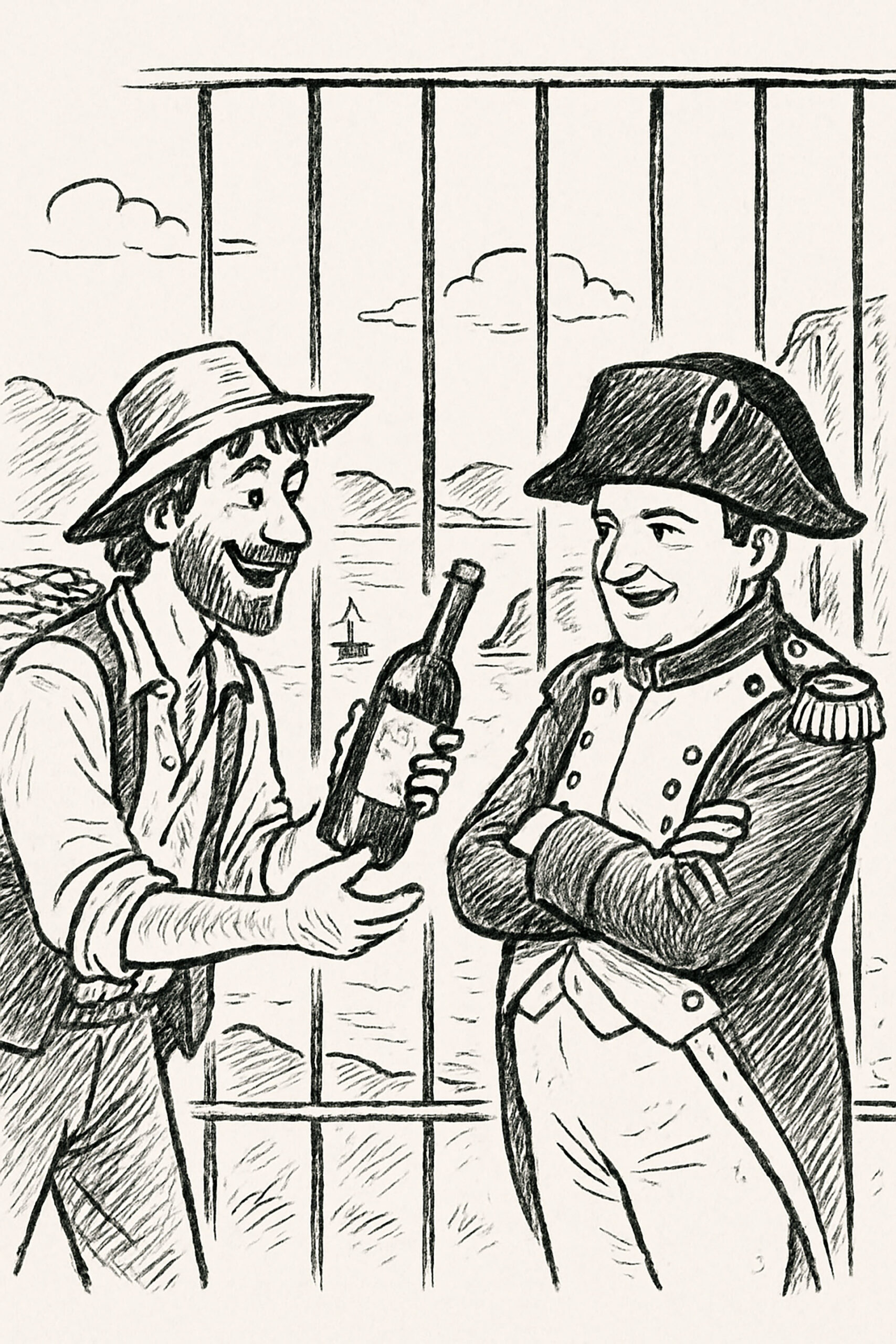 【夢の実例】男が、船旅でたどり着いたセント・ヘレナ島で、囚われの身となっている元皇帝ナポレオンにワインを売りつける。ナポレオンは喜んで購入する。