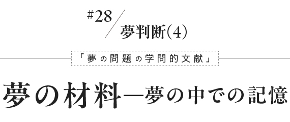 たとえばこんな場合がある。夢で見た内容は、目が覚めてから考えてみてもまったく身に覚えがない。しかし、しばらくして、何か一つの新しい経験をする。するとその経験によって、ずっと以前の失われていた記憶が呼び戻される。それと同時に、あの謎だった夢の“みなもと”が判明する。つまり、目が覚めているときには思い出せなかったような何物かを、夢のなかでは思い出すことができていた、というわけだ。